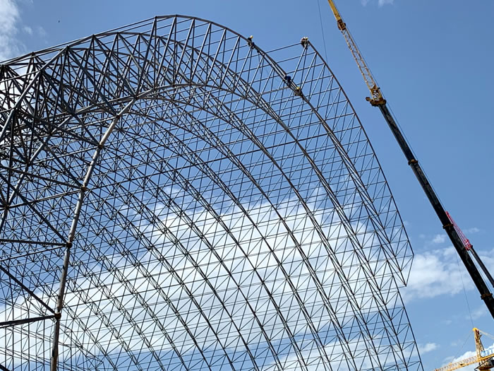 (2)网架加工前应对现场尺寸进行复测,确认无误后方可进行加工、安装;网架制作、运输、安装应遵守《空间网格结构技术规程》JGJ7-2010、《钢网架大庆螺栓球节点》JG/T 10-2009、《钢网架大庆螺栓球节点用高强度螺栓》 GB/T 16939-2016、《大庆钢结构大庆工程大庆施工规范》 GB50755-2012、《大庆钢结构大庆工程施工质量验收标准》 GB50205-2020。
